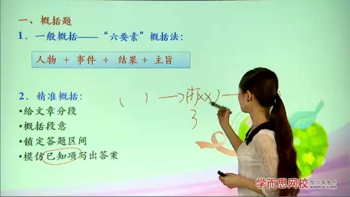 文件目录:8517-8阅读:8课时击破记叙文阅读高频考点 王帆,文件大小:792.96M 第1讲概括题:文章思路梳理及概括主要内容 [90.14M] (1)概括题:文章思路梳理及概括主要内容第1段.mp4...
