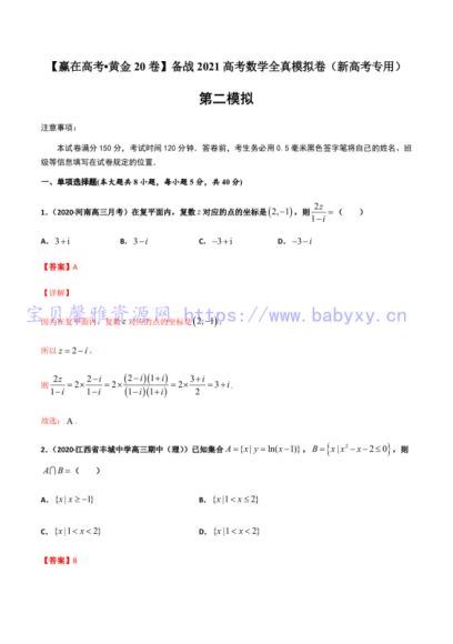 文件目录:黄金卷赢在高考•黄金20卷备战2021高考数学全真模拟卷(新高考专用) (22.39M) 黄金卷01-【赢在高考•黄金20卷】备战2021高考数学全真模拟卷(新高考专用)(解析版).pdf[71...